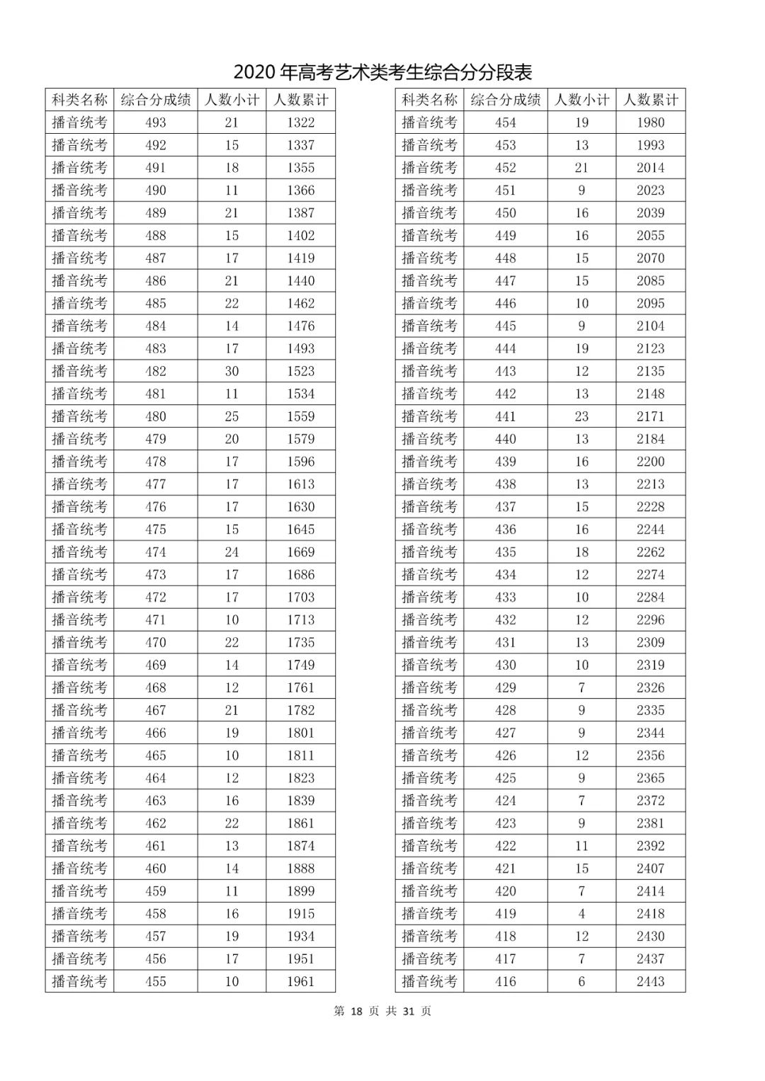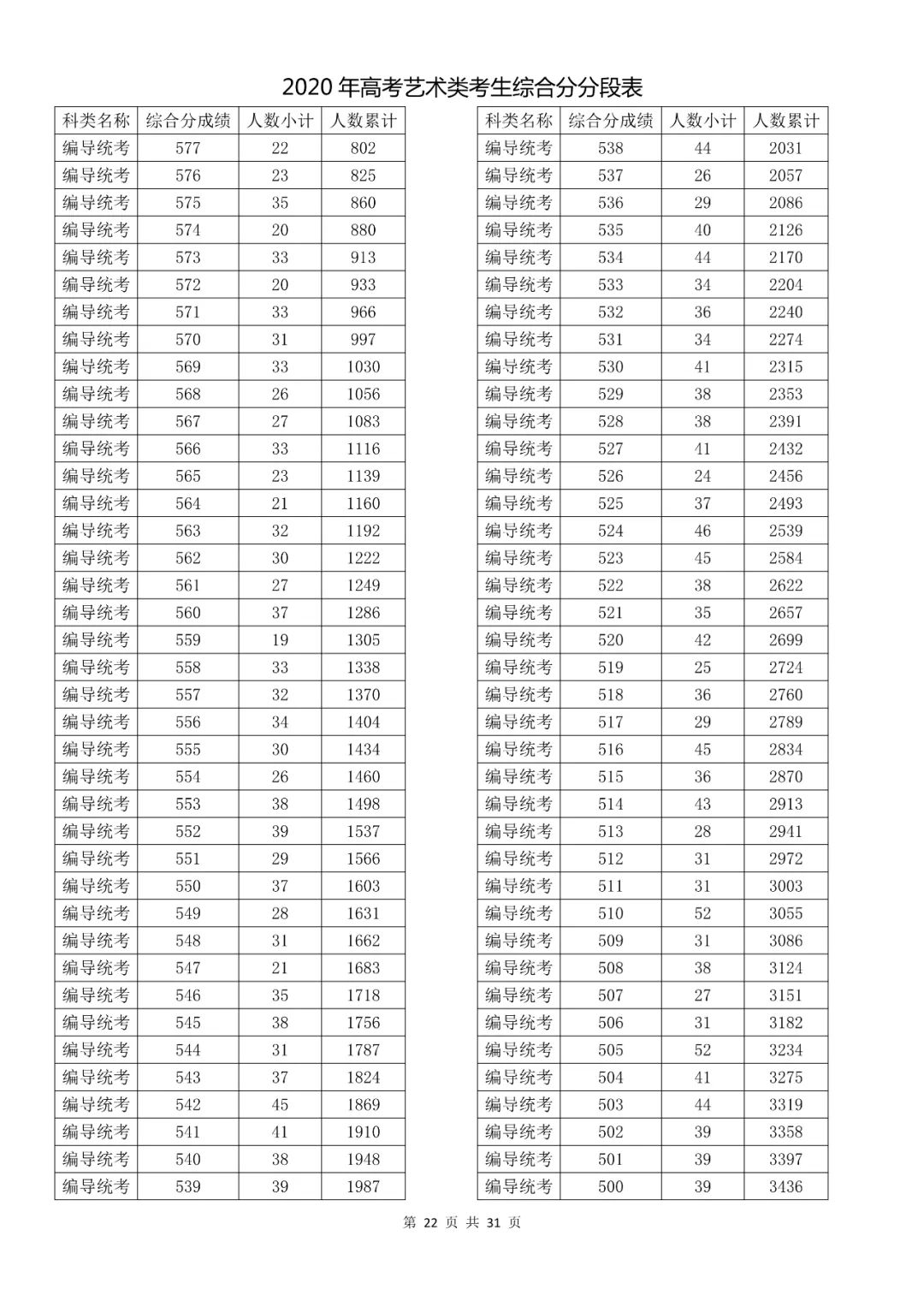 2020年浙江省高考艺术招生综合分(成绩)分段表出炉